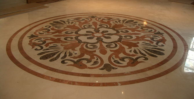 Мозаичный пол состоит из двух слоев — нижнего (из жесткого цементно-песчаного раствора марки 75 состава 1:3-1:4) и верхнего (из цементного раствора марки 100 с добавлением каменной или мраморной крошки).
